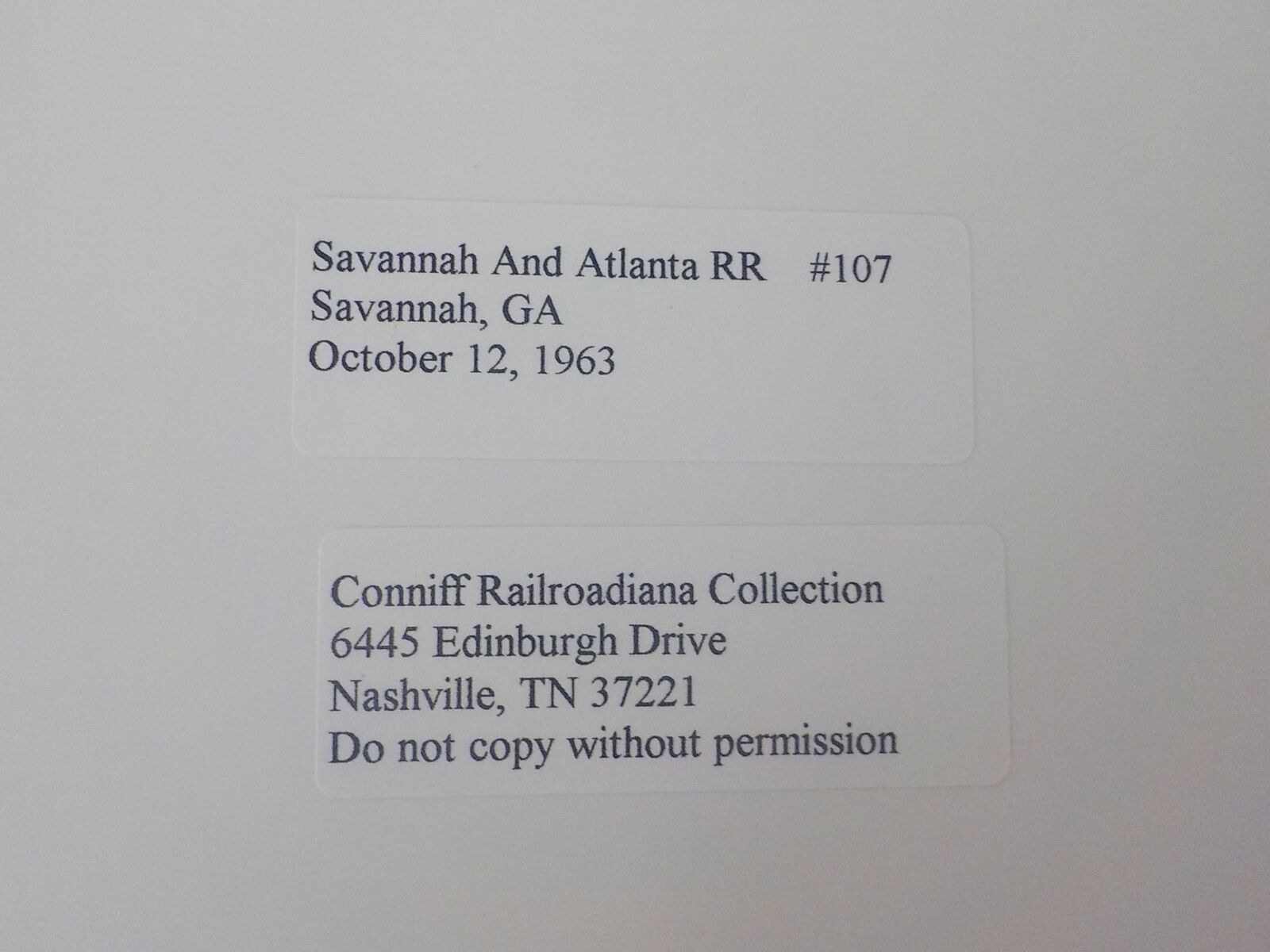 Photo Savannah & Atlanta Locomotive #107 8X10 B&W
