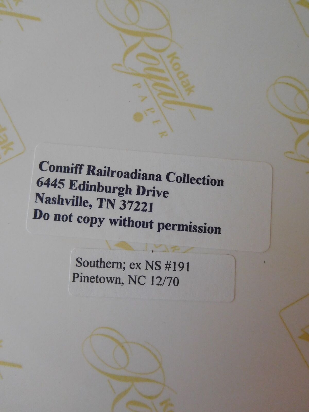 Photo Southern Railroad Locomotive #191 8 X 11.5 Color Ex NS Pinetown NC 1970