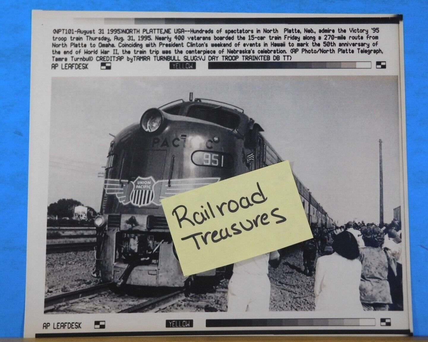Photo Union Pacific Locomotive #951 AP Leafdesk August 31 1995 North Platte NE.  Hundreds of Spectators admire the Victory 95 troop train. Approx. 7 X 8 Inches.