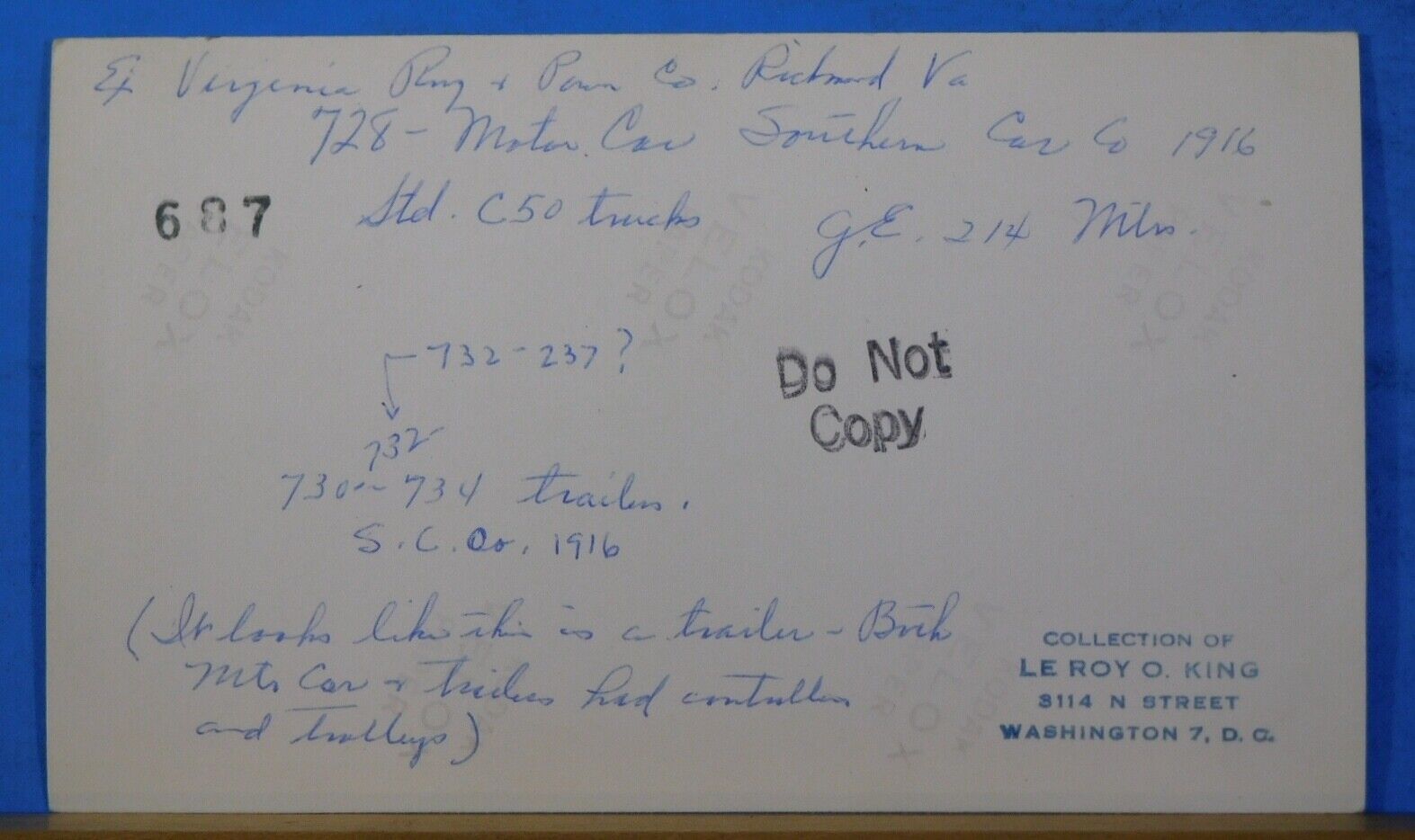 Photo Washington Virginia Railway #237 Richmond Va. 1916 6 x 3 ½