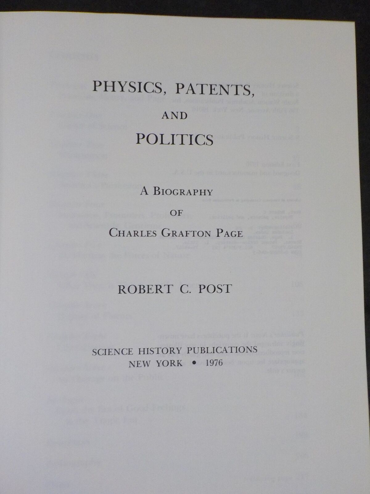Physics Patents & Politics A Biography of Charles Grafton Page by Robert Charles Post