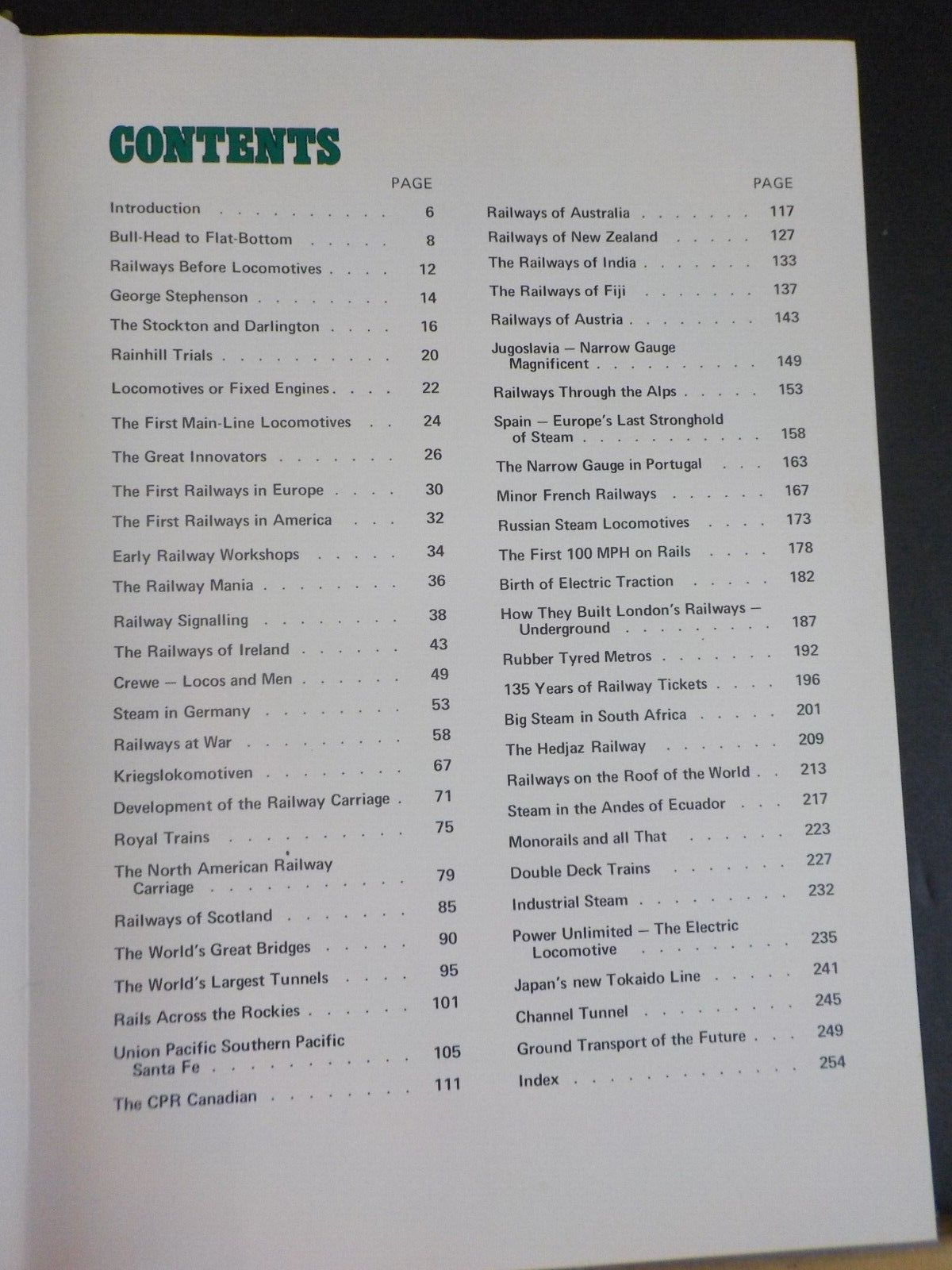 This magnificent book traces the development, production and application of the railway train from its beginnings in the Industrial Revolution to the 150 mph railways of today. The story is told with the help of hundreds of superb photographs in color and black and white, printed with a lavish use of second color tints. The development of railways in all five continents is described, with the men who built them and the advances in civil engineering which made them possible.