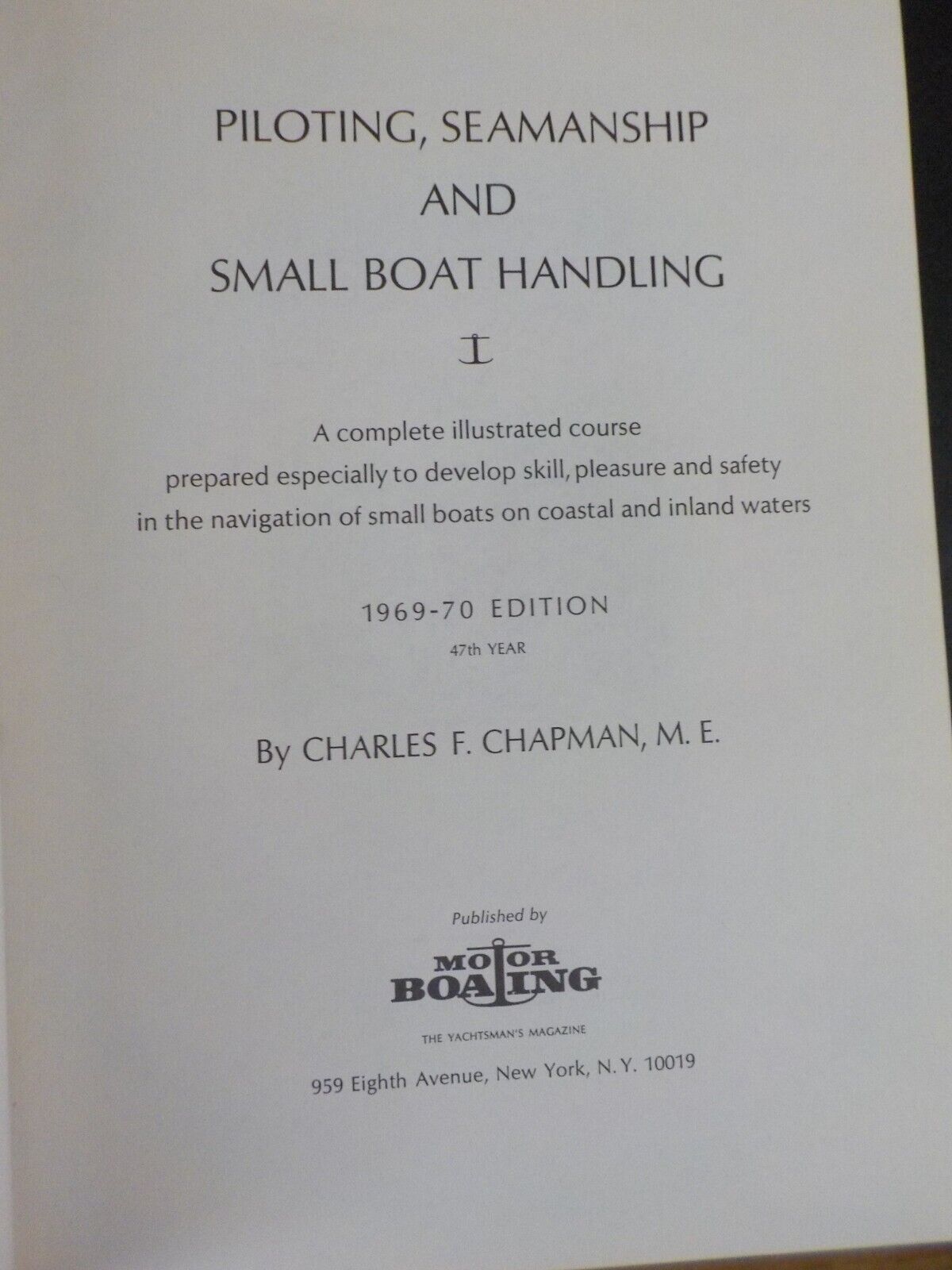 Piloting Seamanship and Small Boat Handling By Charles Chapman Dust Jacket 1968  523 Pages A complete illustrated course prepared especially to develop skill, pleasure and safety in the navigation of small boats on coastal and inland waters,  1969-70 edition.  DUST JACKET has damage.