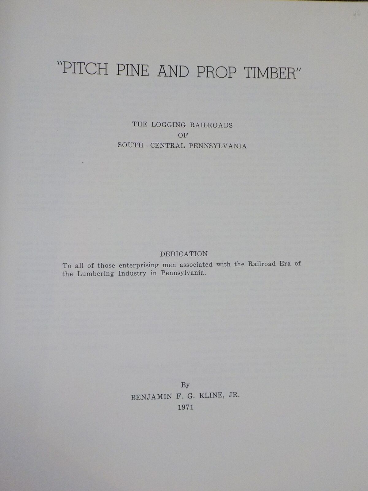 Pitch Pine and Prop Timber #1 Logging Railroad Era of Lumbering in Pennsylvania By Benjamin FG Kline Jr. the logging railroads of south central Pennsylvania.