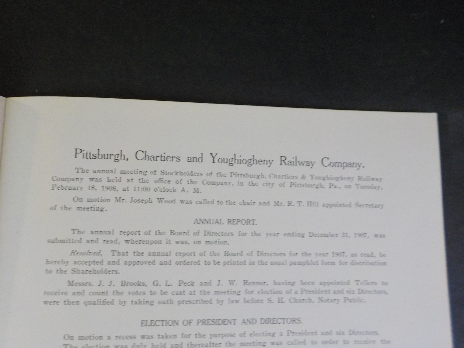 Pittsburg, Chartiers and Youghiogheny Railway Company 1907 25th Annual Report