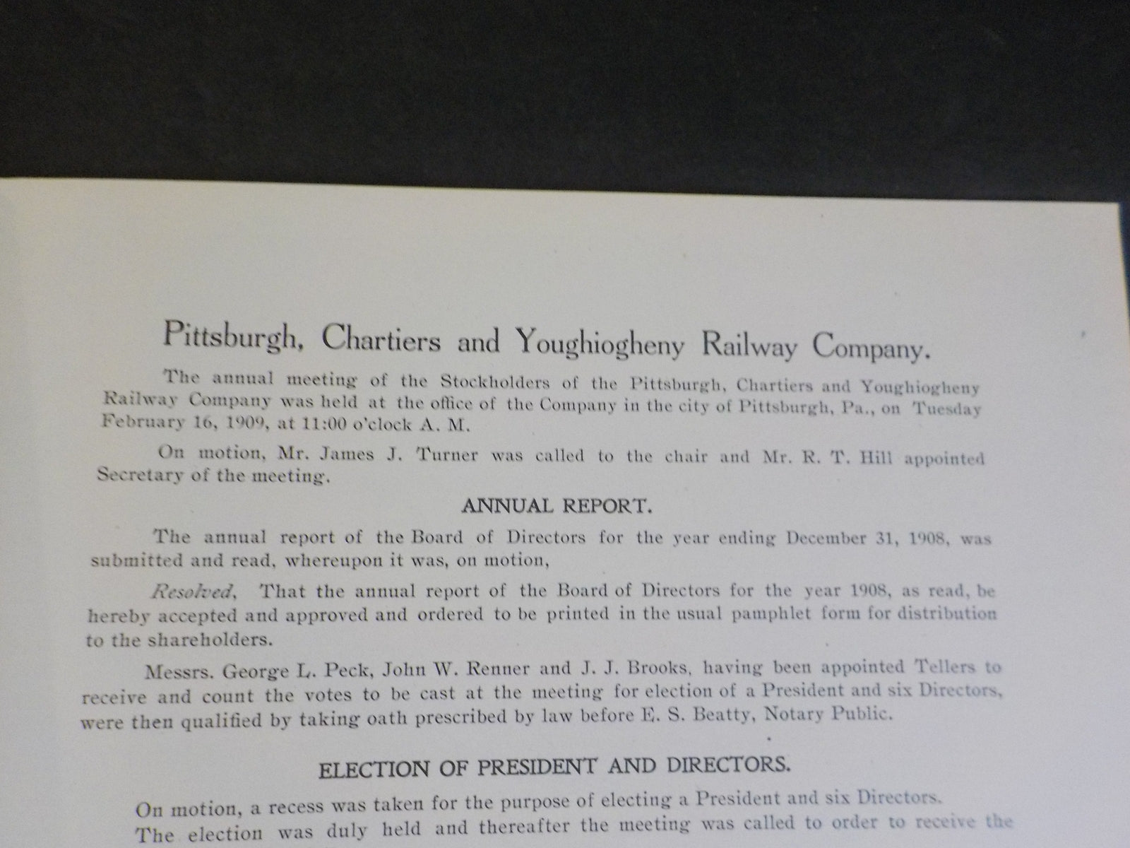 Pittsburg, Chartiers and Youghiogheny Railway Company 1908 26th Annual Report sc