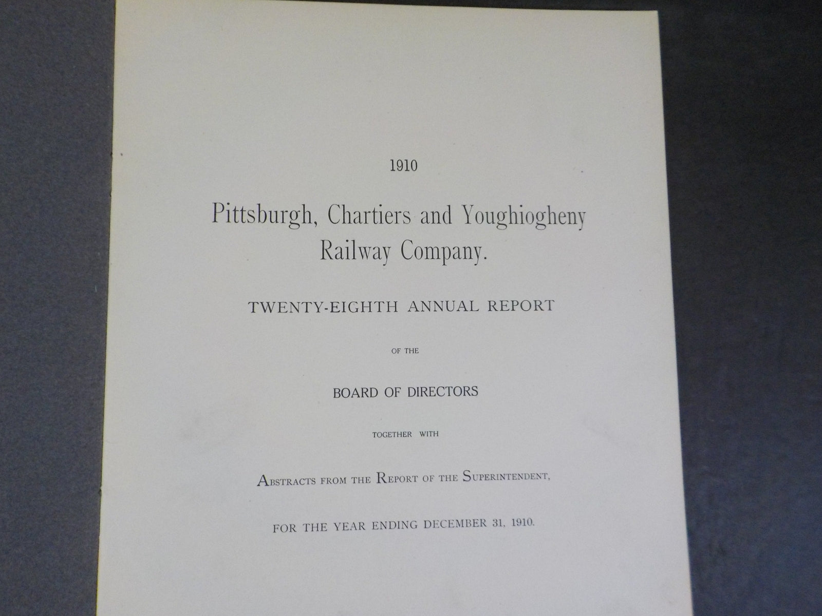 Pittsburg, Chartiers and Youghiogheny Railway Company 1910 28th Annual Report
