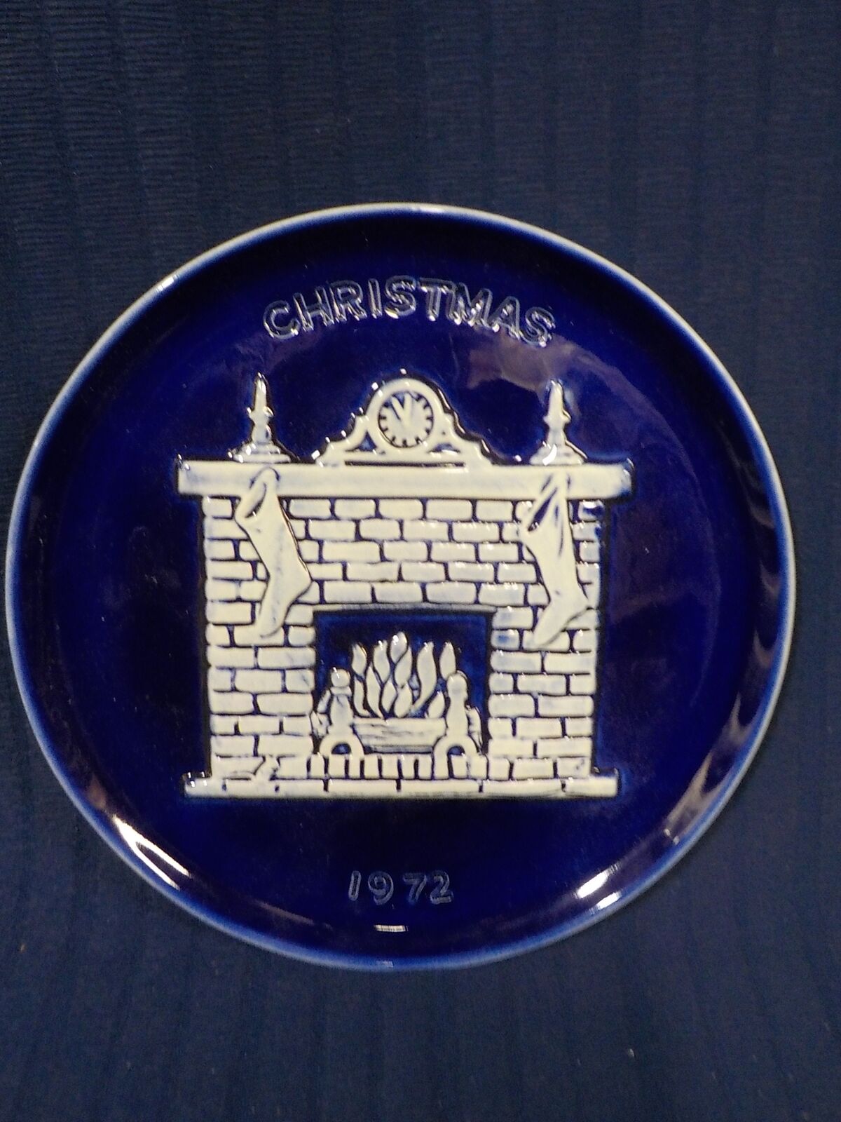 Plate Christmas 1971 Blue Fireplace Stockings Royal ROckwood P0980