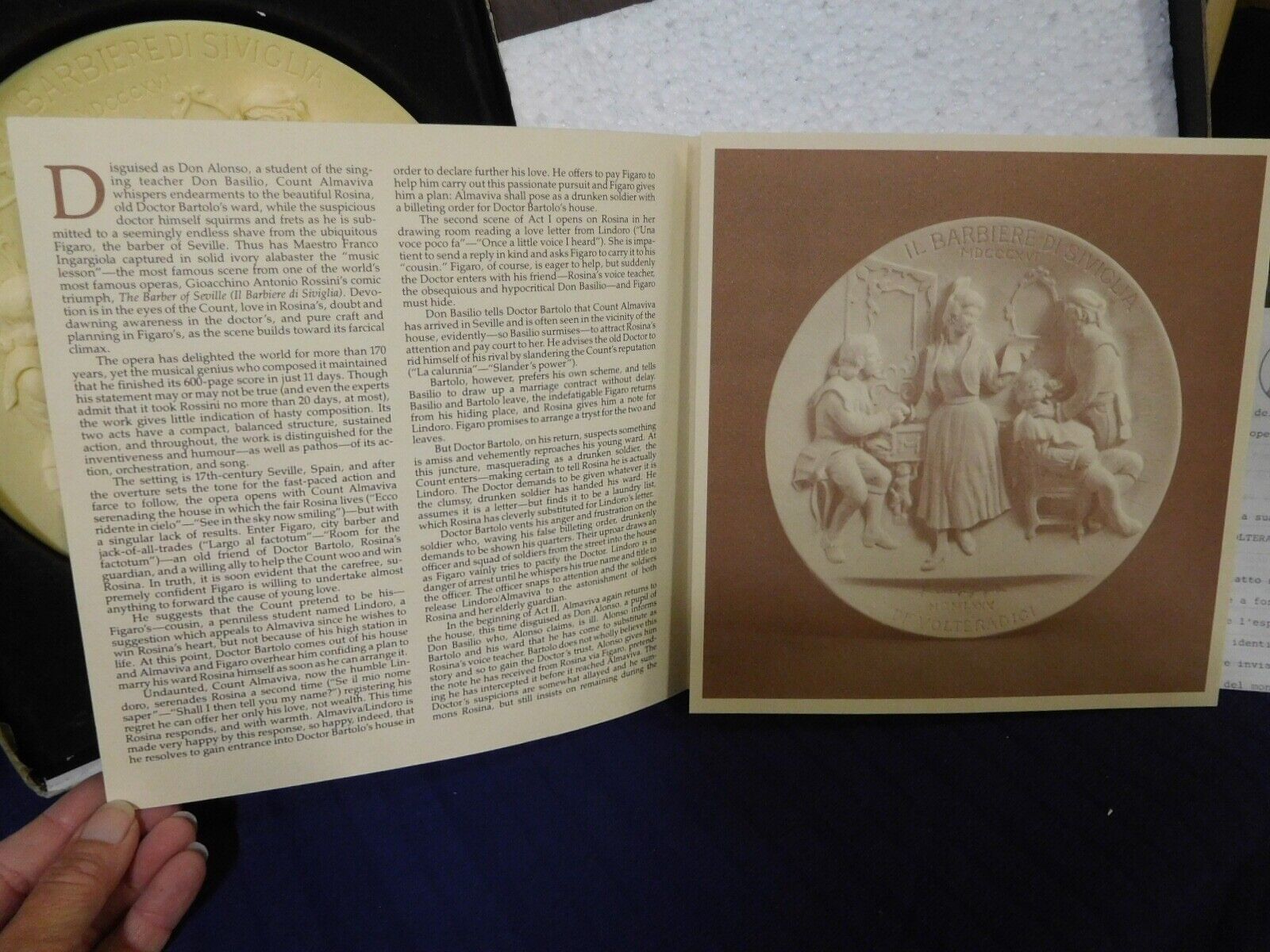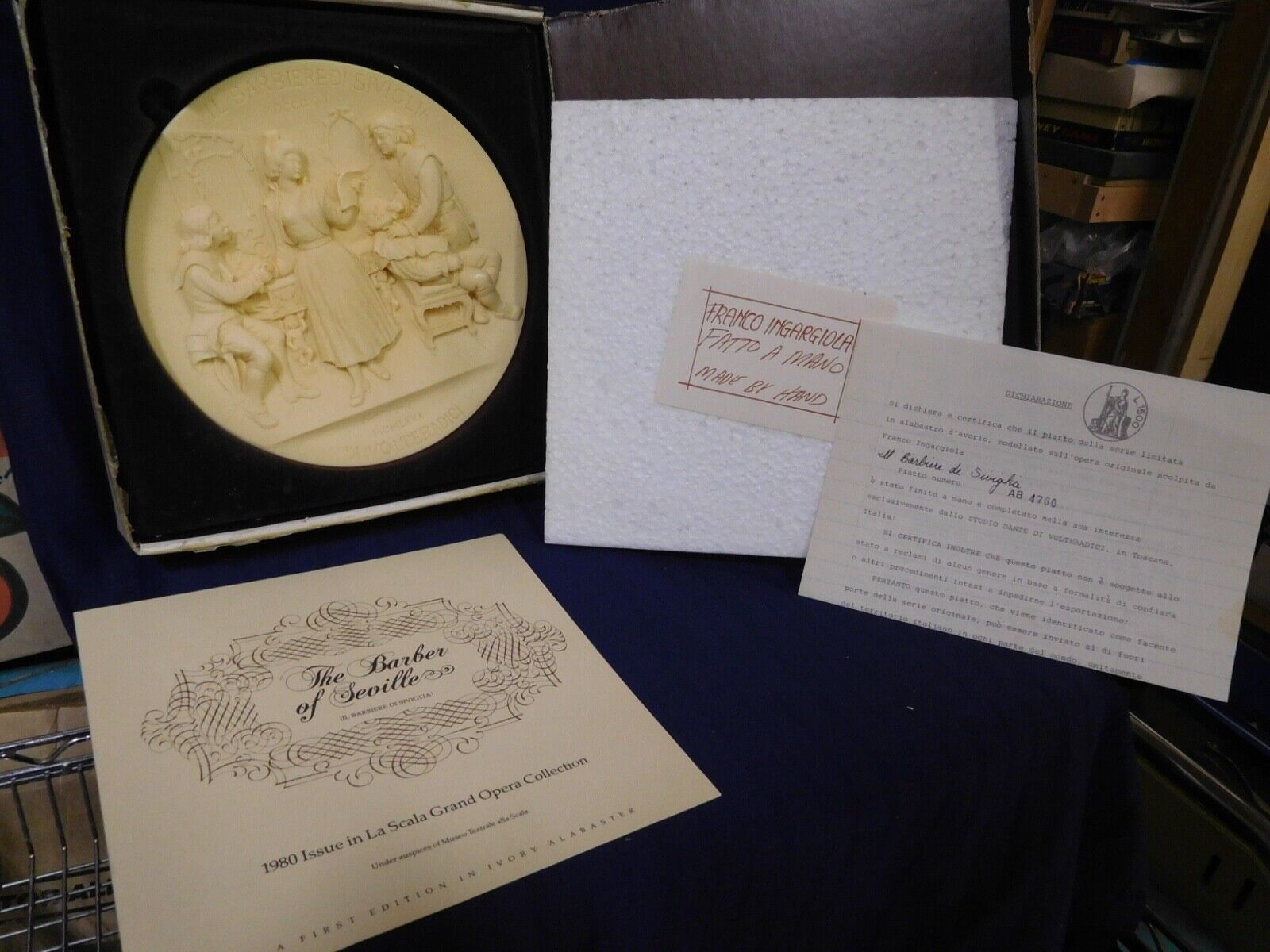 The Barber of Seville by Franco Ingargiola. Hand Made First Edition in iv Alabaster in the La Scala Grand Opera Collection. Plate #AB 4760. 1980 Studio Dante Di Volteradici in Toscana, Italy.