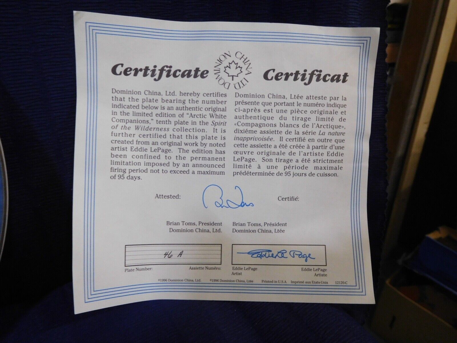 Arctic White Companions by Eddie LePage. Tenth issue in the Spirit of the Wilderness collection by Dominion China. Plate #46A. 1996