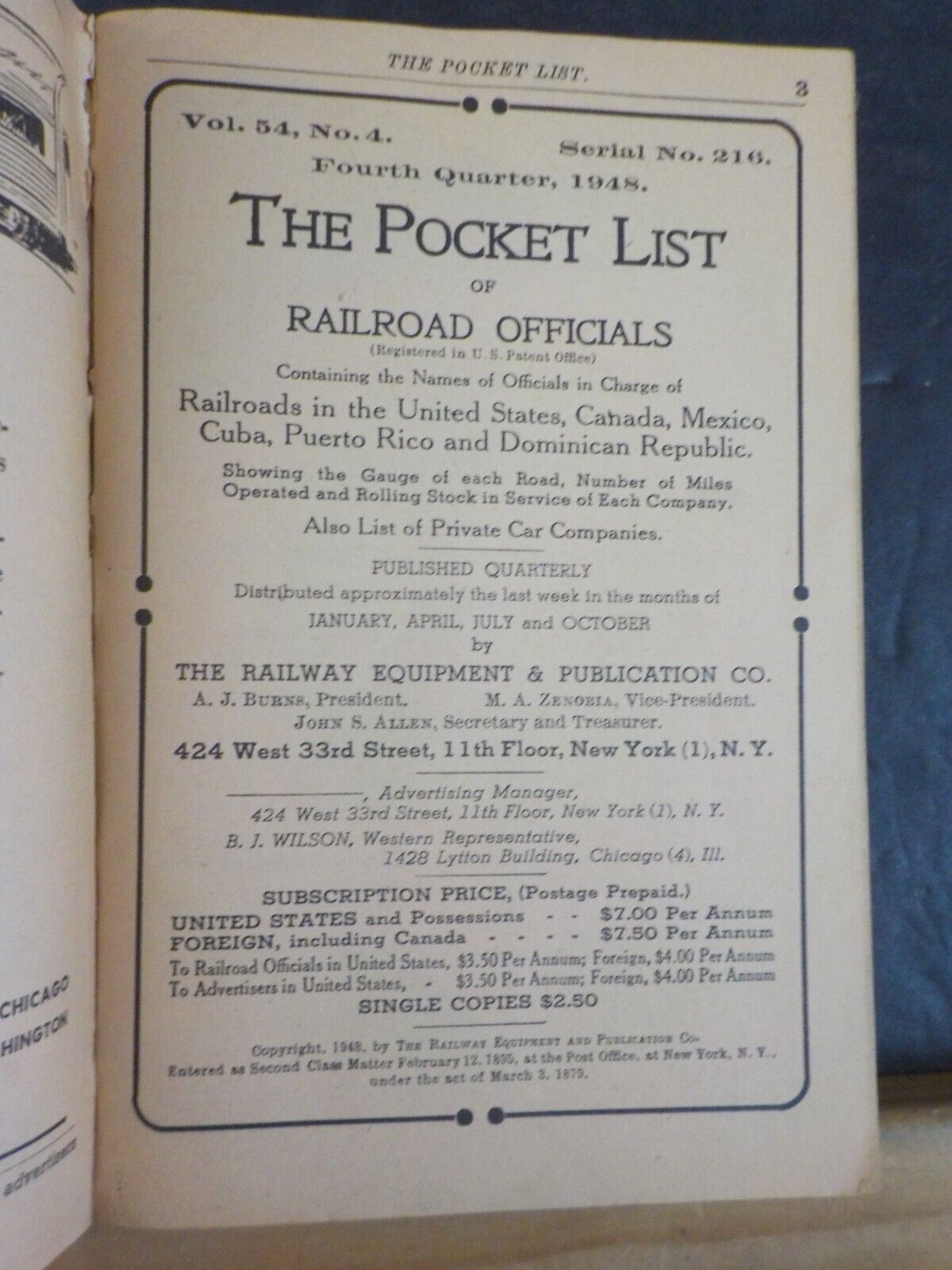1948 4th quarter Vol 54 34 Serial No 216