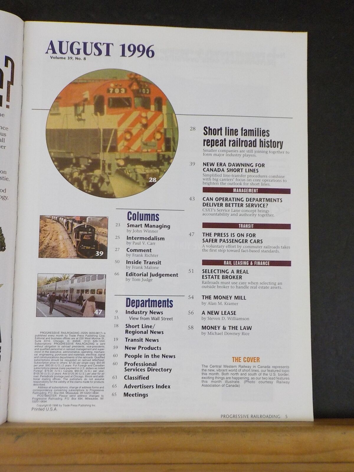Progressive Railroading Magazine 1996 August New Era Drawings For Canada Short Lines