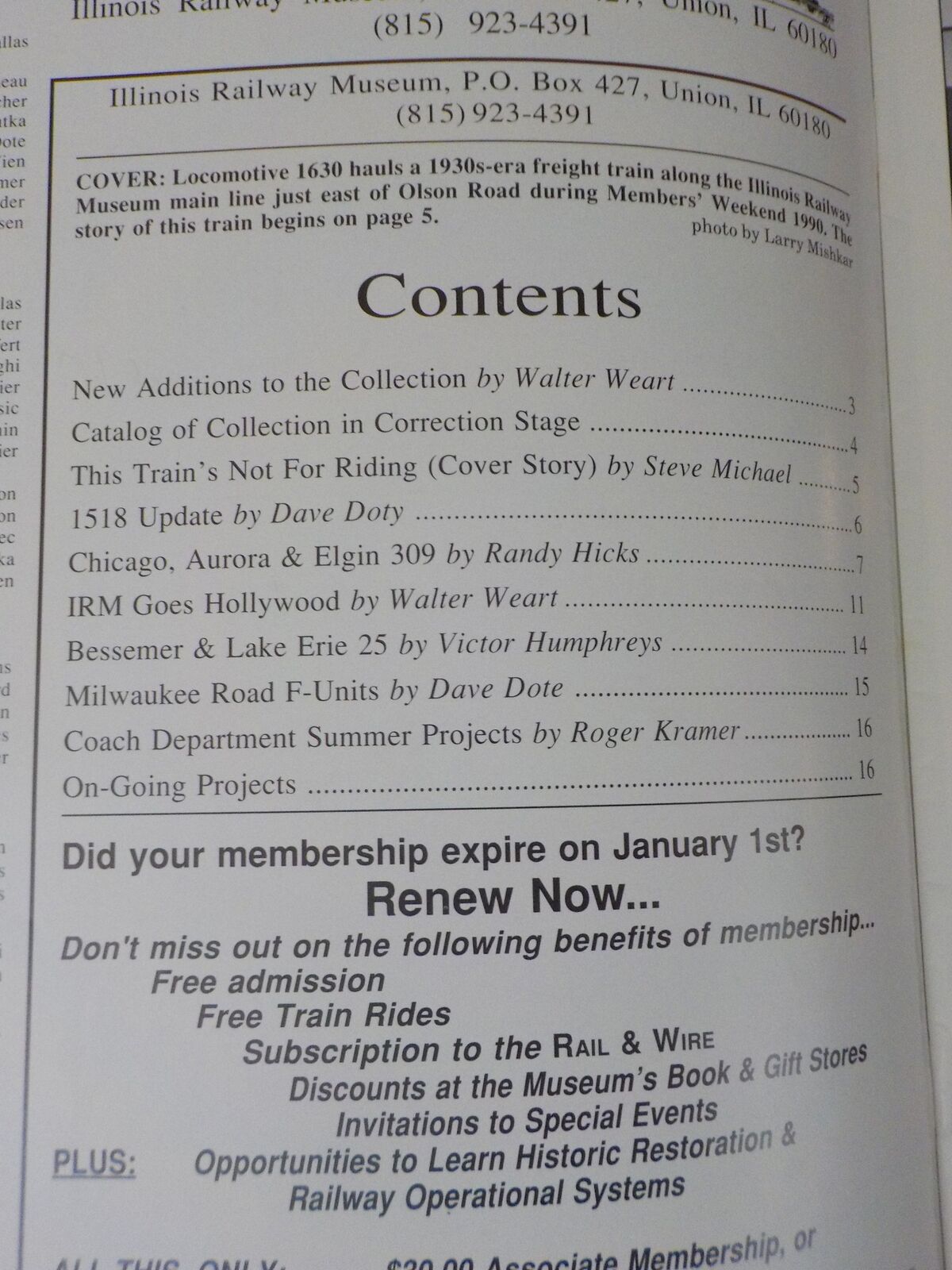 Rail & Wire #138 Winter 1991 Illinois Railway Museum This Train's Not For Riding