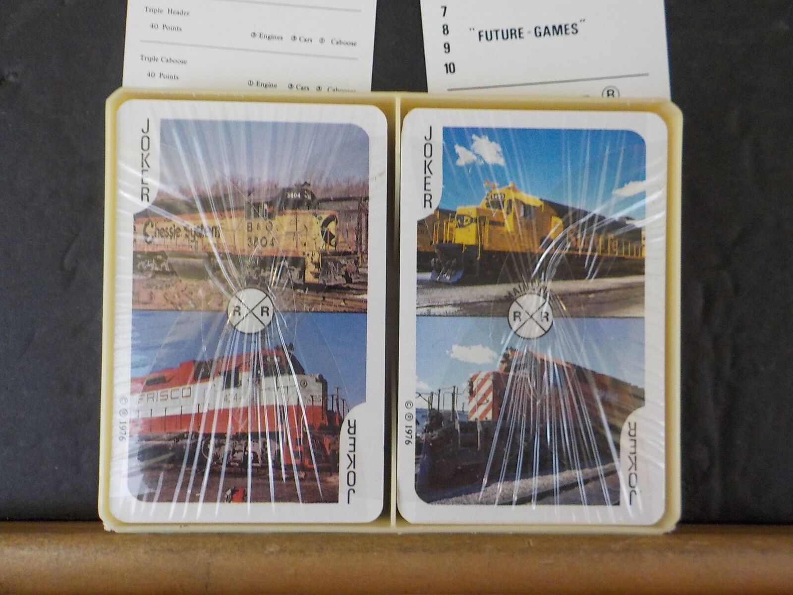 2 Decks of Cards Both are sealed Can be used to play the train game or as a regular deck. Includes all 4 suits and all numbers. Not sure about jokers. Photos of the loose cards from an opened deck that we have.