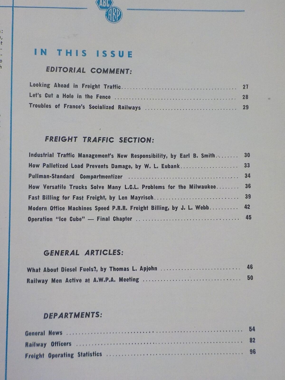 FREIGHT TRAFFIC SECTION: