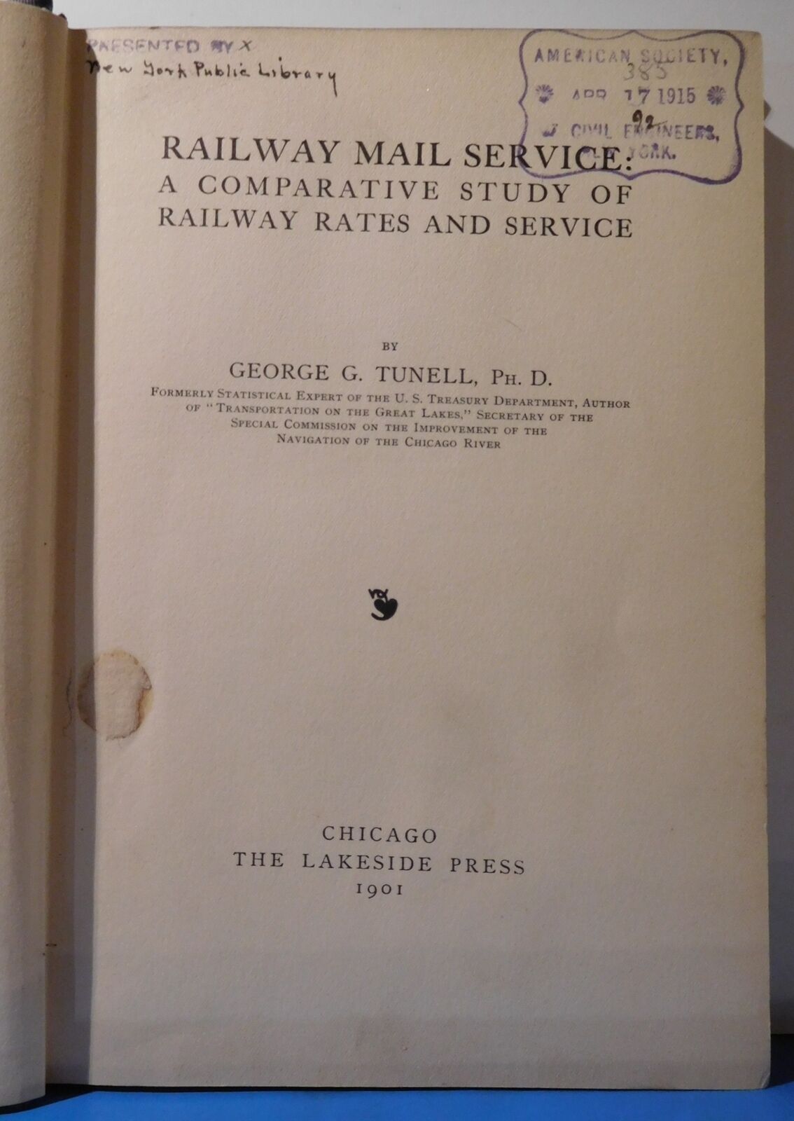 Railway Mail Service A Comparative Study of Railway Rates and Service 1901 Ex-Library Book United Engineering Society gift of NY Public Library,