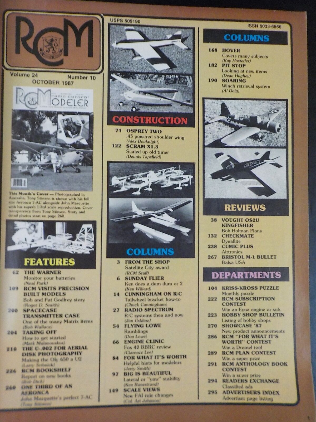 RC Modeler Radio Control 1987 October Osprey Two Scram X1.3