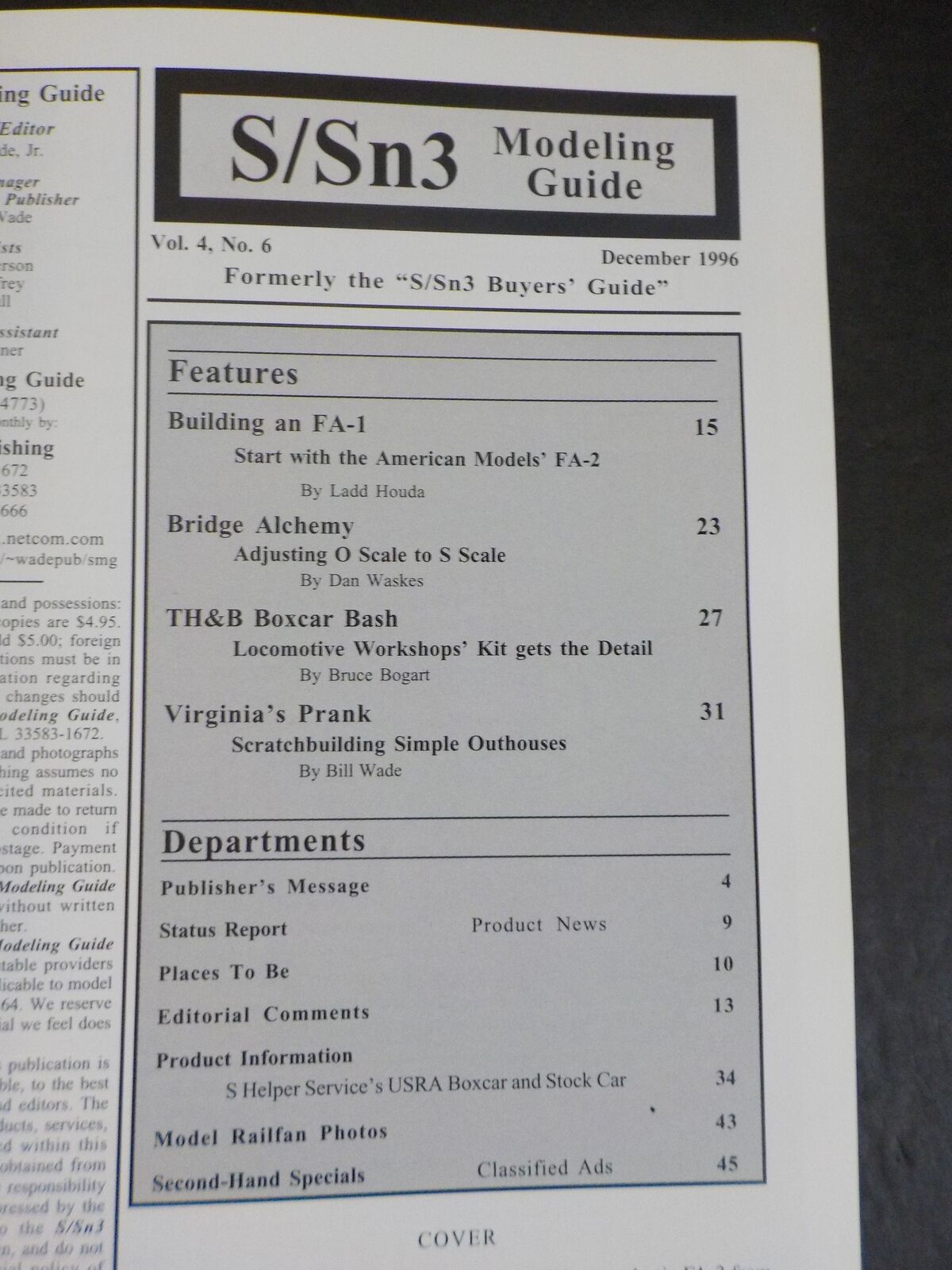 S/Sn3 Modeling Guide 1996 December V4#6 S Scale Formerly S/Sn3 Buyers Guide