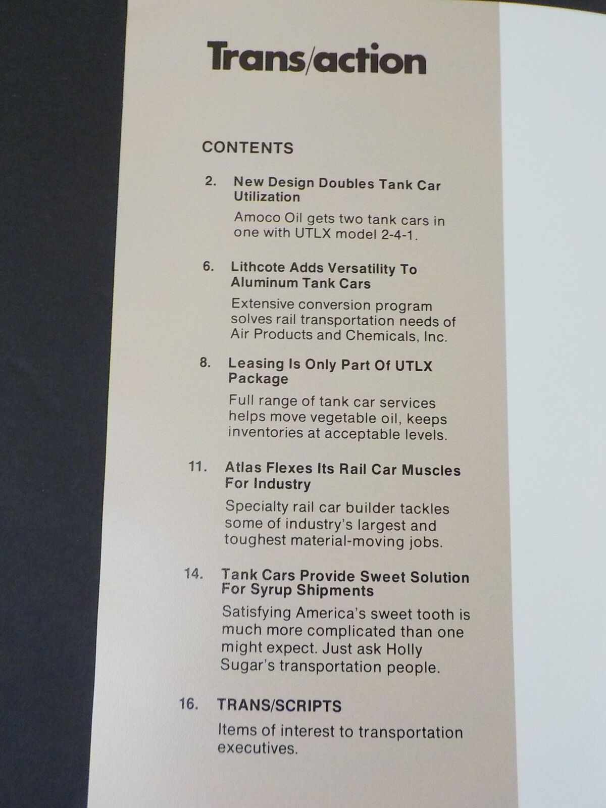 16. TRANS/SCRIPTS Items of interest to transportation executives.
